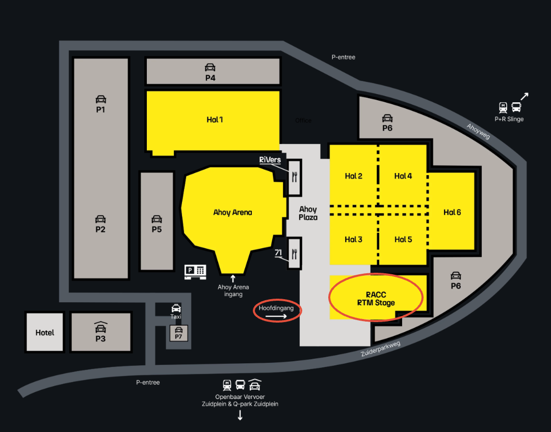 Zie plattegrond van Ahoy: